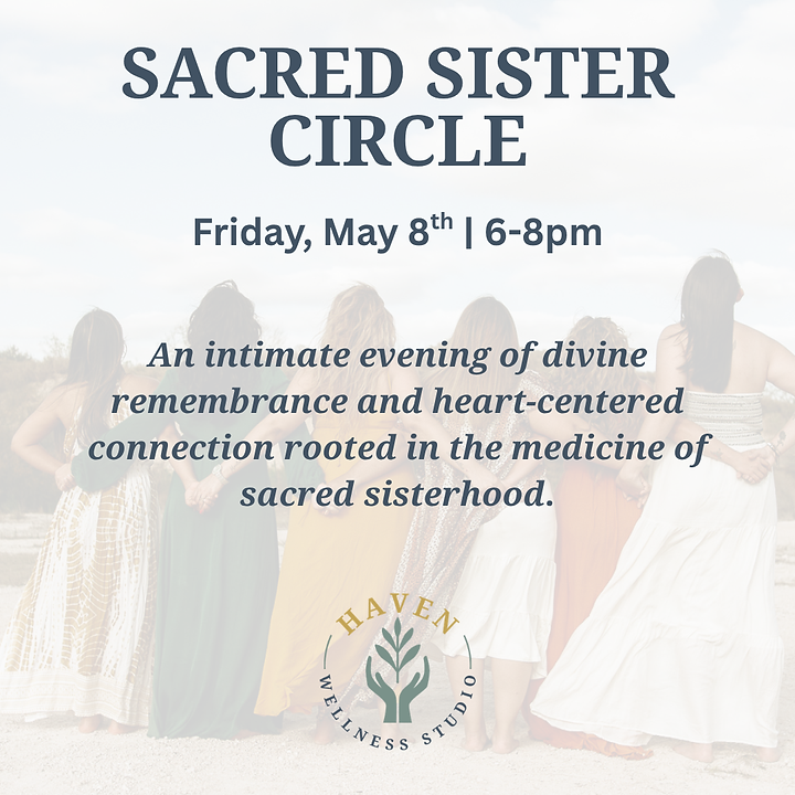 This is a soft place for women to land, to lay down the weight of the world, remove the armor, and be held in the frequency of safety, presence, and belonging. Each gathering begins with a heart-opening cacao ceremony, followed by an intuitively guided journey that may include breathwork, hypnosis, somatic practices, inward reflection, astrology, and sacred discussion. Every circle is unique, guided by the energy of the group and the wisdom that wishes to move through that night. This offering is devoted to illuminating the feminine essence within us all to heal our hearts, deepen the threads of sisterhood in our community, and create a powerful ripple of remembrance that extends beyond the circle and into the collective. > Second Friday of every month > Included for Haven Unlimited Members > $35 for non-members Come exactly as you are. You belong here.